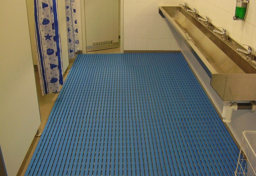 Medence szőnyeg csúszásgátló PVC szalagokkal. Vastagsága 16 mm.