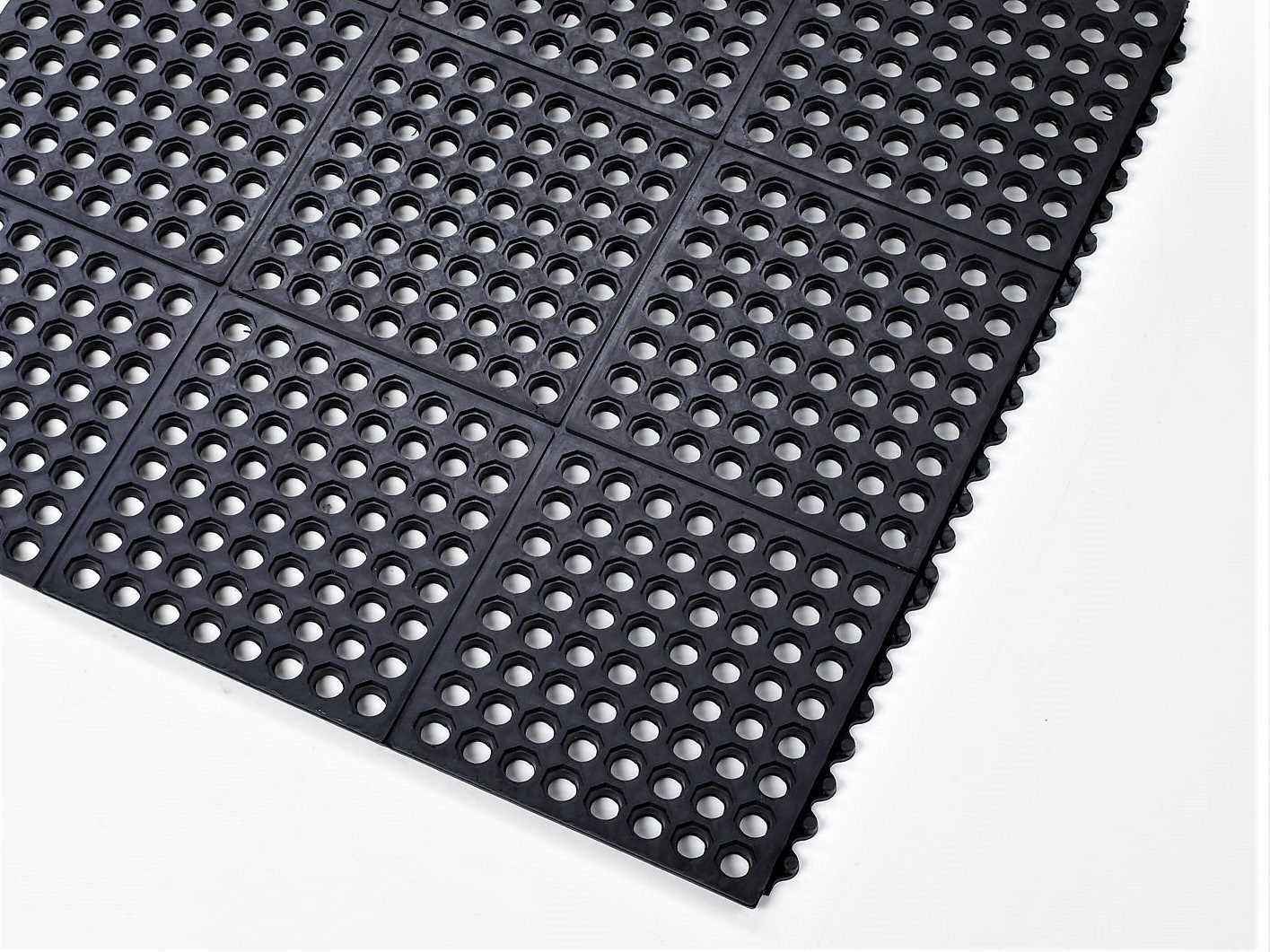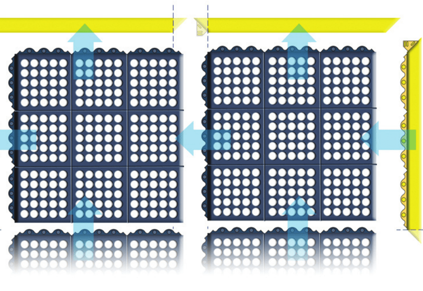 A négyzetalakú 91 x 91 cm méretű modulok könnyen összekapcsolhatók kereszt- és hosszanti irányban is, így tetszőleges felület fedhető le az adott munkaterület igényei szerint.