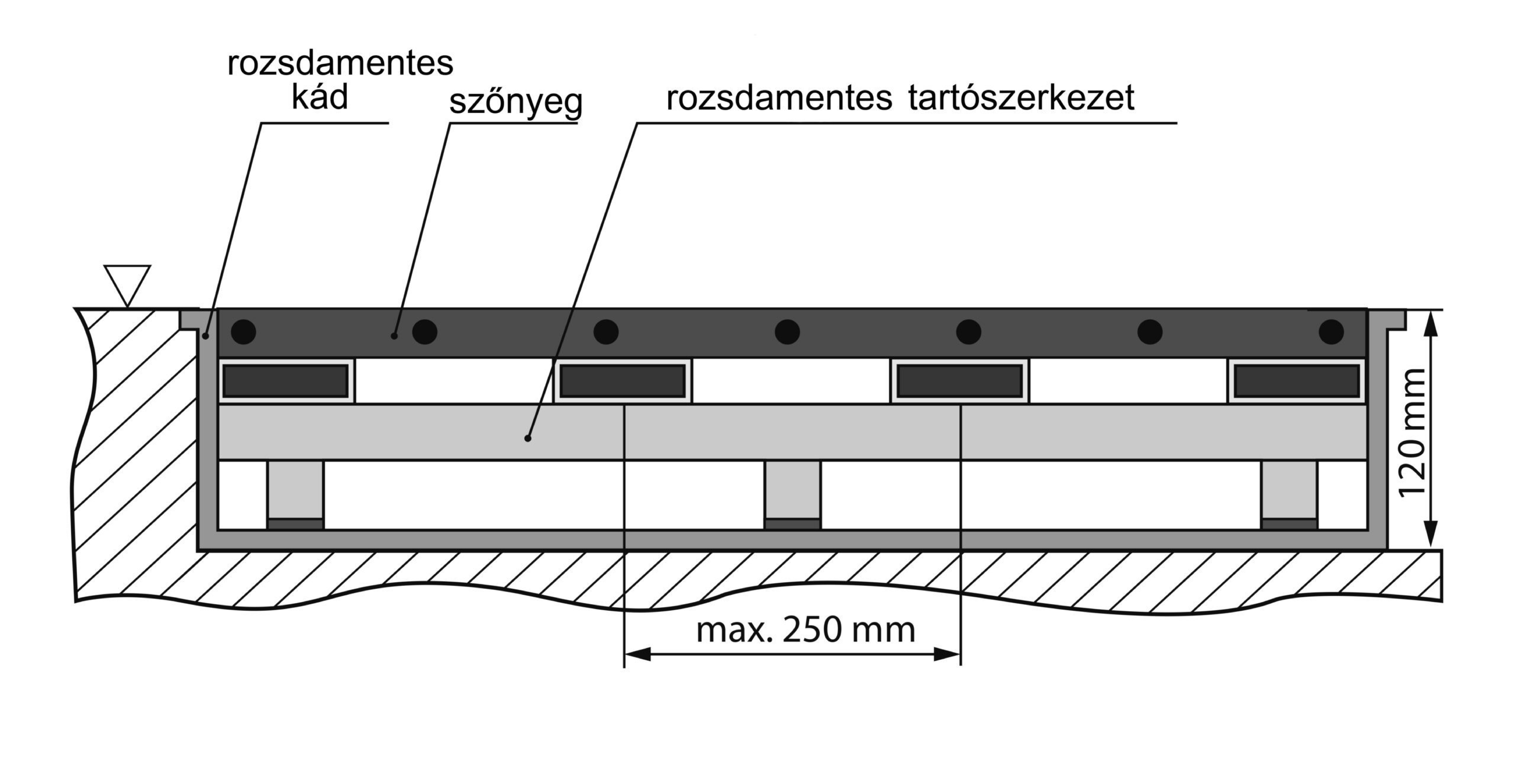 szőnyeg / rozsdamentes tartószerkezet / rozsdamentes kád