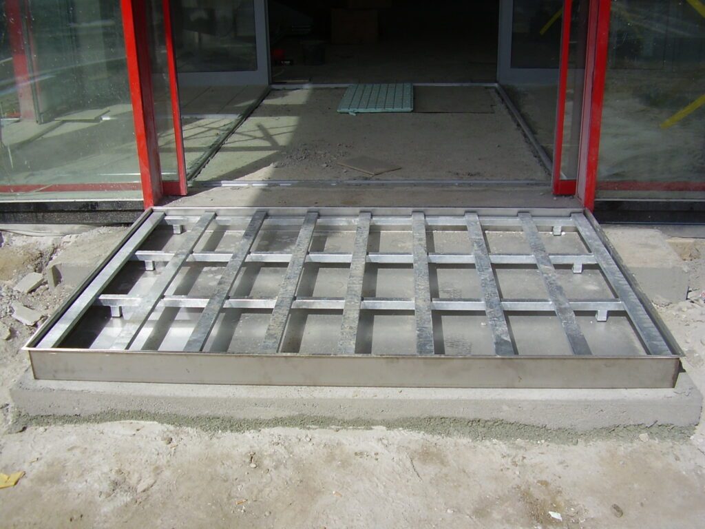 A ROZSDAMENTES KÁD az összes szőnyegtípus elhelyezésére szolgál a családi házak, adminisztratív épületek, hotelek, éttermek, bevásárló központok és kis boltok elé. A használatával elegánsan süllyeszthetők a padlószintbe nemcsak a kültéri szennyfogók, amelyek ezen felül állítható magasságú rozsdamentes szerkezetbe is behelyezhetők, hanem a beltéri textil szennyfogó szőnyegek is. A rozsdamentes kád 2 mm vastag rozsdamenetes acéllemezből készült.