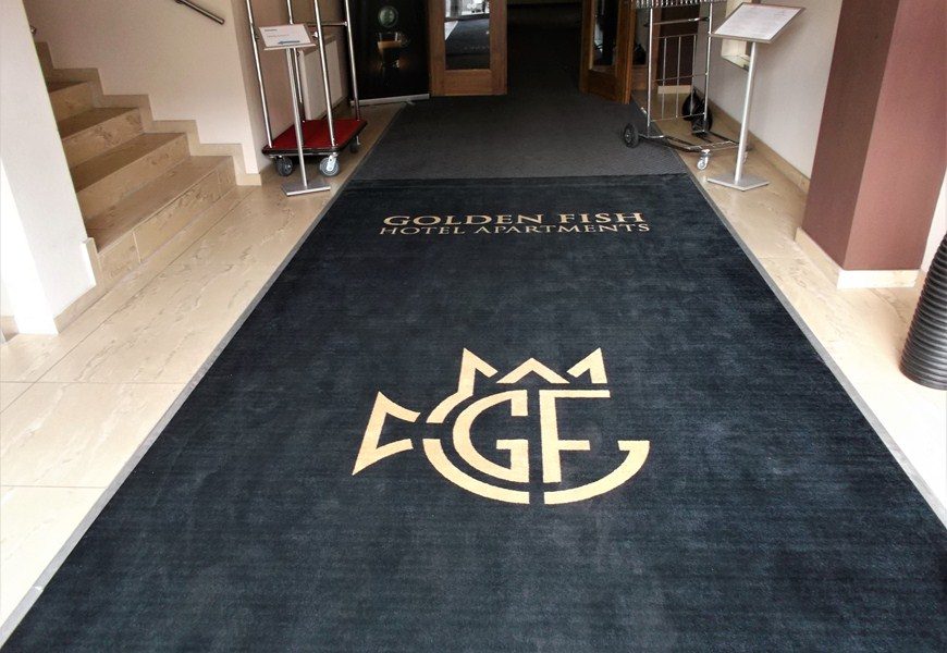 Ellenálló szennyfogók logóval NSF-en csúszásgátló gumival. Magassága 8 mm. A gumiléc nélküli változatú szőnyegek 30 °C-on moshatók