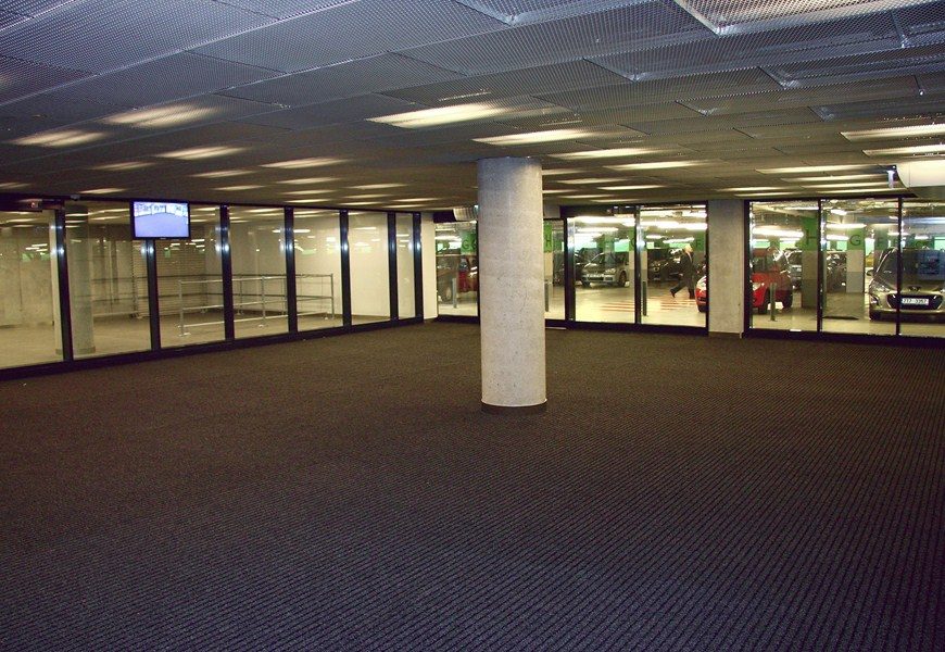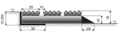 lerakás: 15 × 30 × 2 mm-es alumínium keretbe a padlóba süllyesztve, illetve a padlóra lehelyezve 2 cm széles gumiléccel