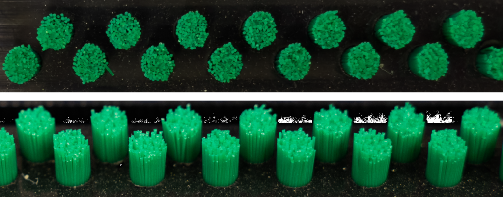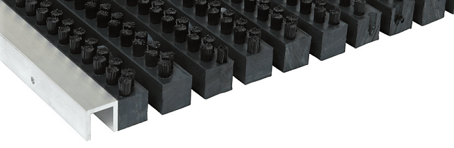 A Brushwell logo szennyfogó szőnyeg alapját a fekete műanyag profilok és a színes nylon (poliamid) kefék alkotják, amelyek rozsdamentes acélhuzallal vannak összekapcsolva és gumi távtartó gyűrűkkel vannak elválasztva. Ennek köszönhetően takarításkor a szennyfogó feltekerhető és könnyen kezelhető.