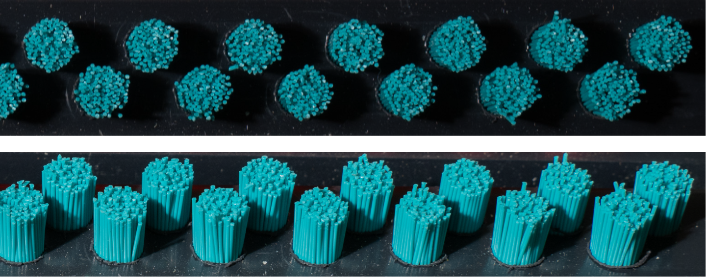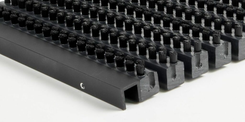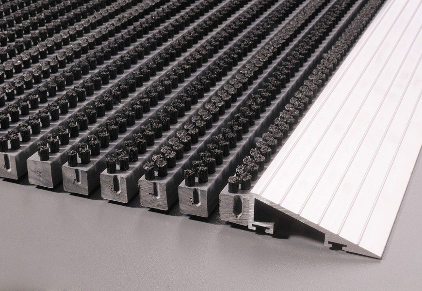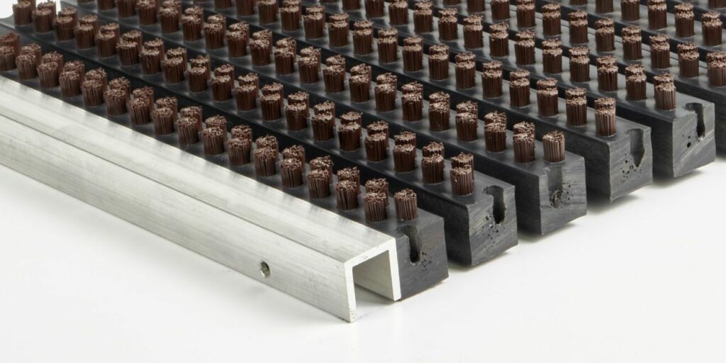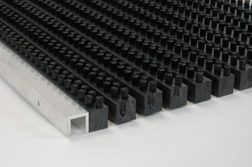 A Brushwell szennyfogó szőnyeg alapját a fekete műanyag profilok és a nylon (poliamid) kefék alkotják, amelyek rozsdamentes acélhuzallal vannak összekapcsolva és gumi távtartó gyűrűkkel vannak elválasztva. Ennek köszönhetően takarításkor a szennyfogó feltekerhető és könnyen kezelhető. Az első szennyfogó zónaként használatos durva szennyeződésre.