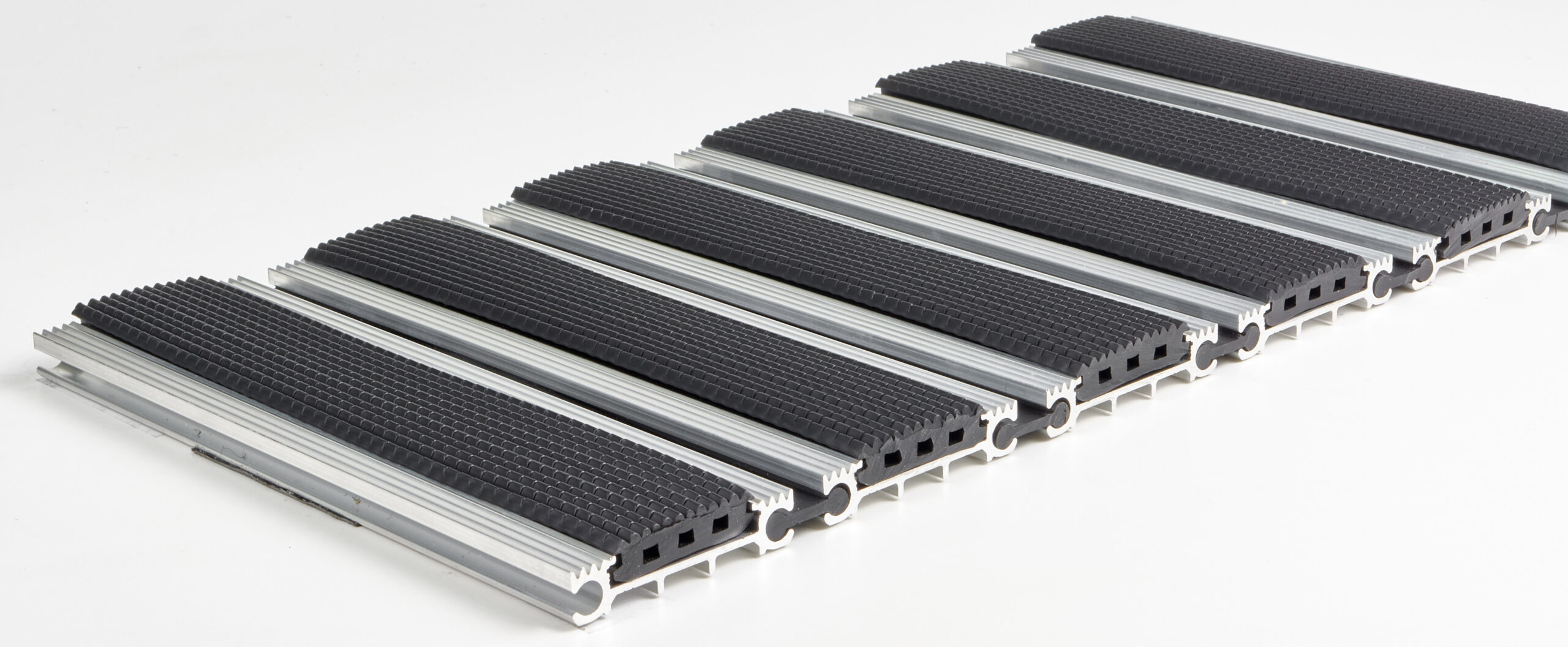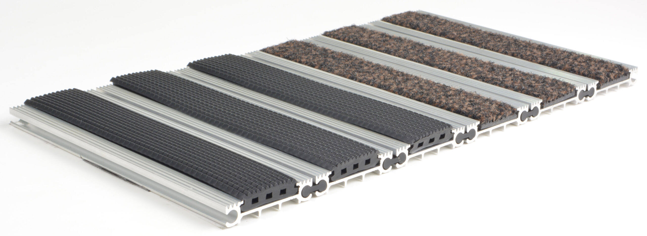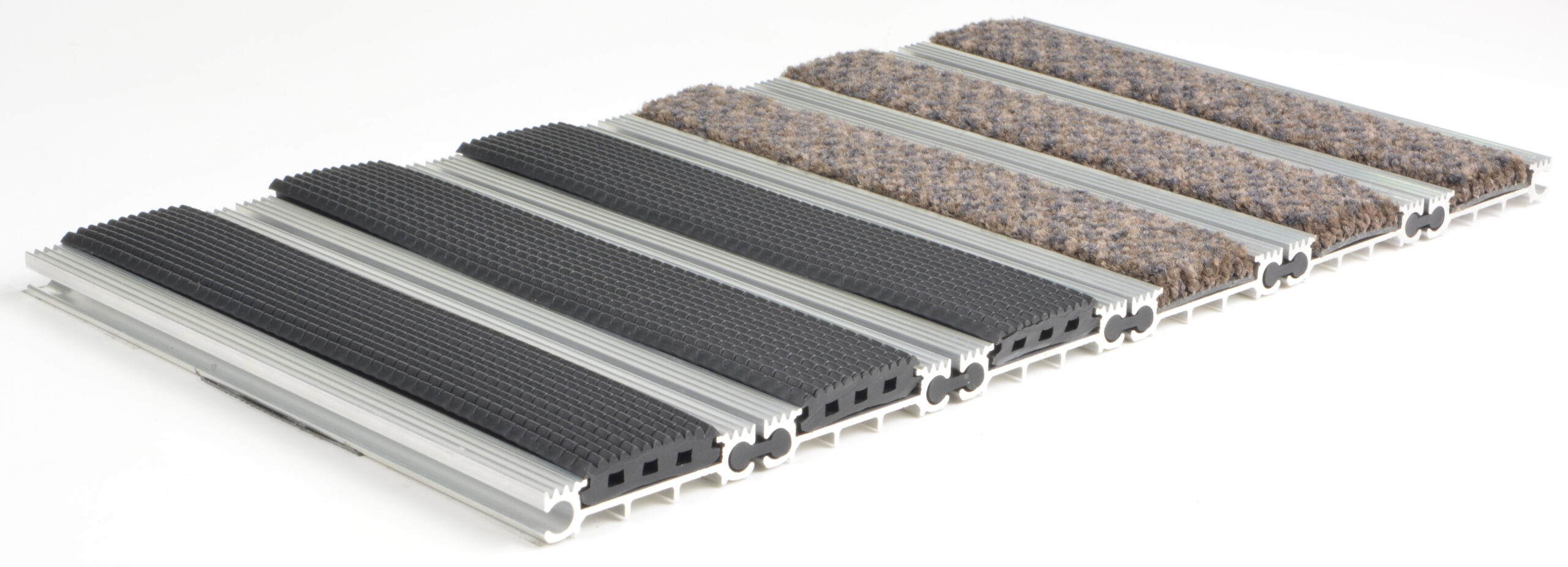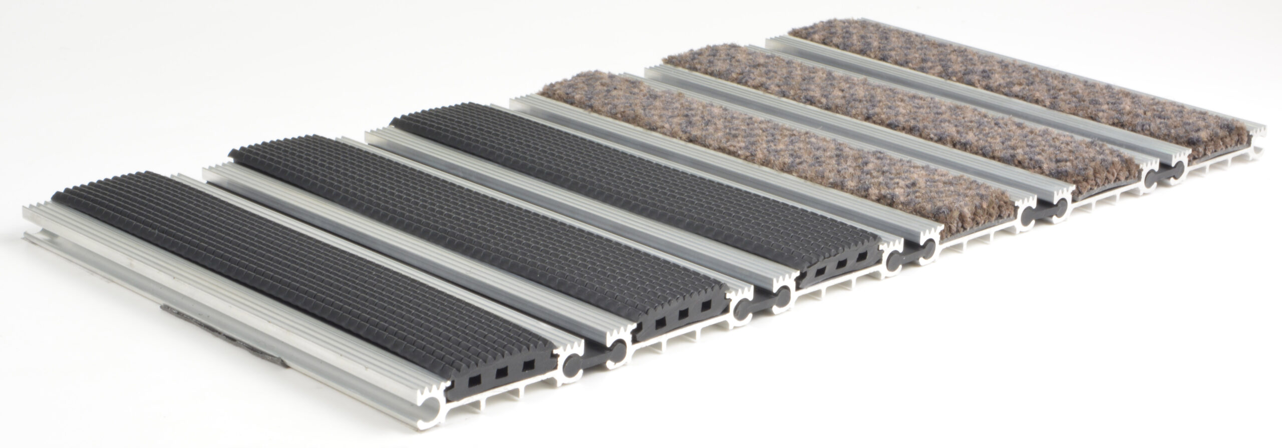 Ez egy önhordó szőnyeg, amelynek alapját széles, hornyolt alumíniumprofilok alkotják, amelyeket rugalmas, rugalmas profil köt össze, ami lehetővé teszi a szőnyeg feltekerését. Az alumíniumprofilok vagy egy hornyolt, kalapács alakú PVC-csíkkal vannak összeszerelve a durva szennyeződések esetében, vagy egy szövettel a finom szennyeződések és a víz esetében.