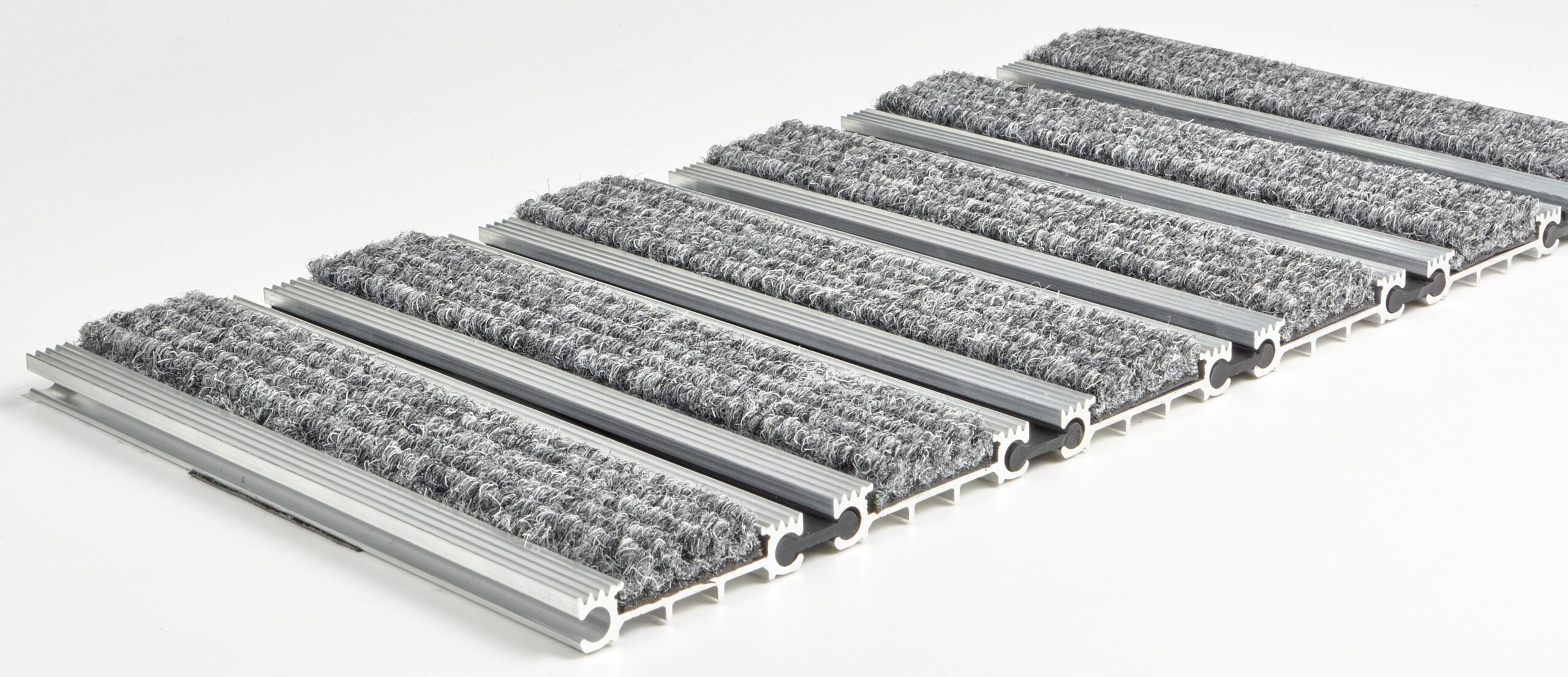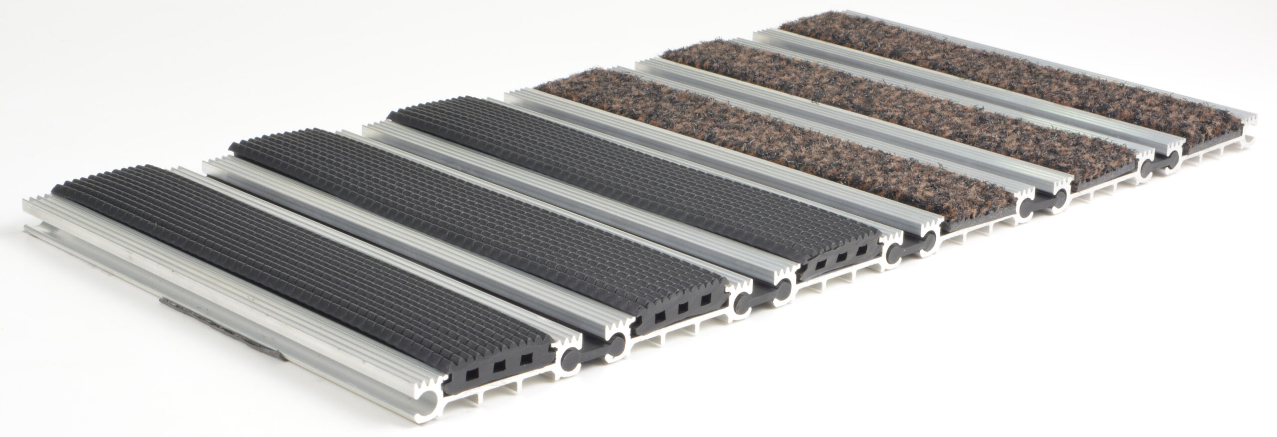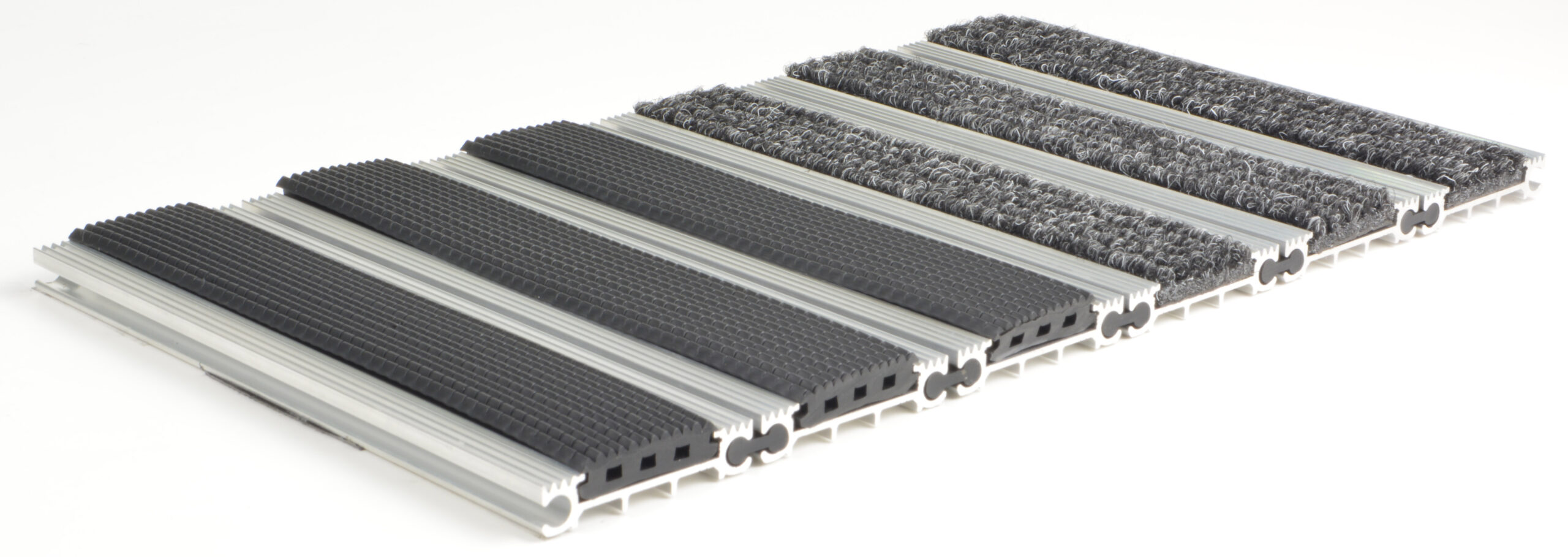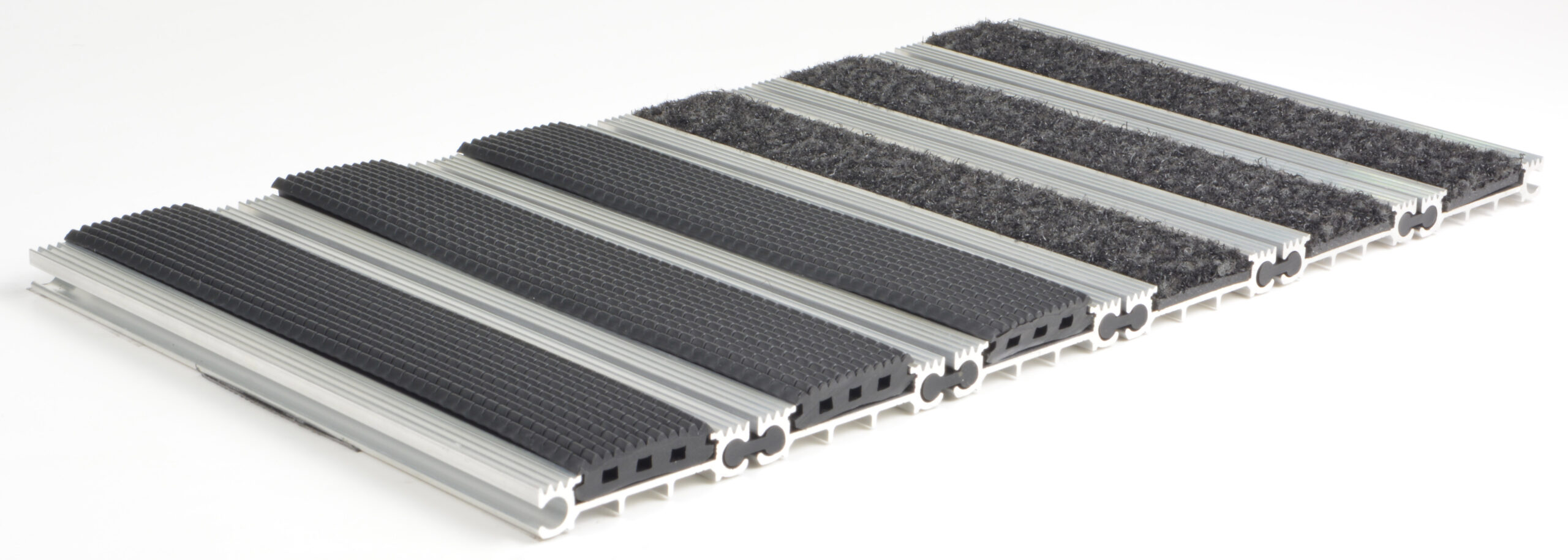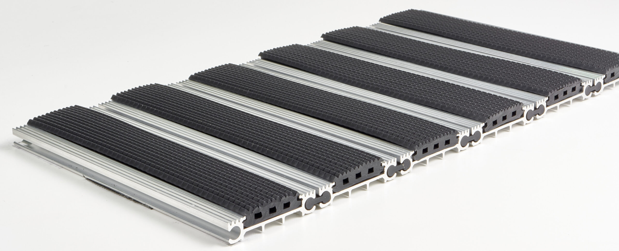 Ez egy önhordó szőnyeg, amelynek alapját széles, hornyolt alumíniumprofilok alkotják, amelyeket rugalmas, rugalmas profil köt össze, ami lehetővé teszi a szőnyeg feltekerését. Az alumíniumprofilok vagy egy hornyolt, kalapács alakú PVC-csíkkal vannak összeszerelve a durva szennyeződések esetében, vagy egy szövettel a finom szennyeződések és a víz esetében.