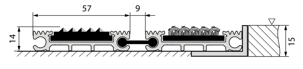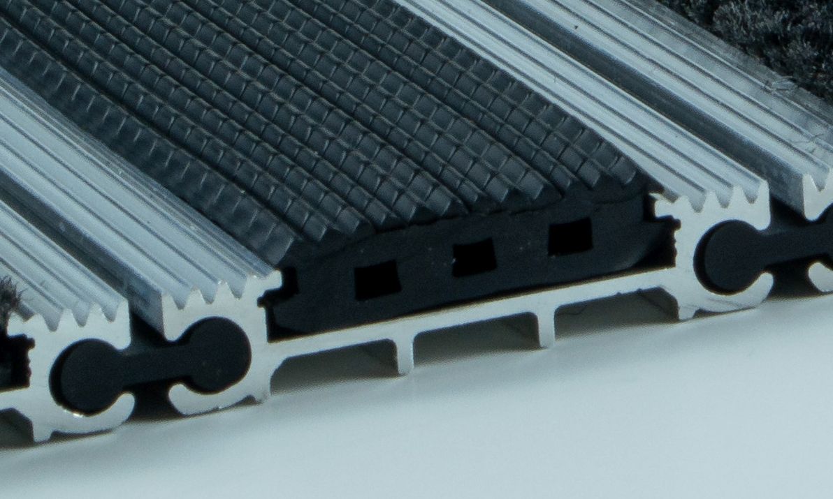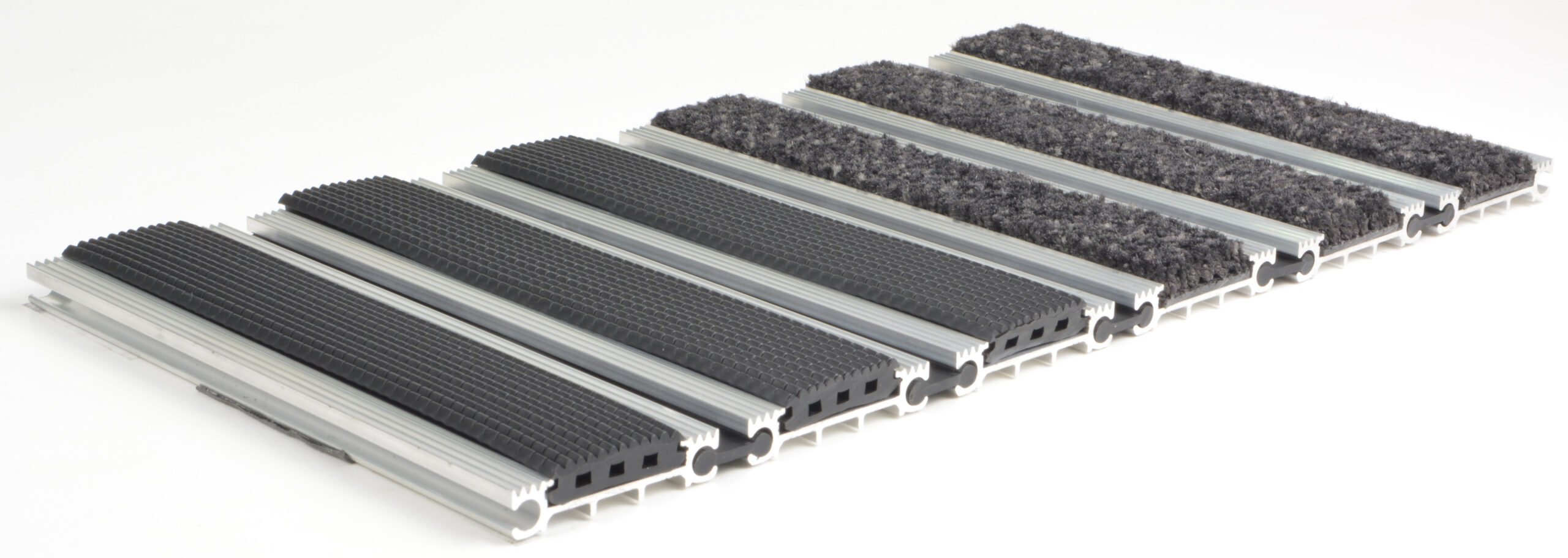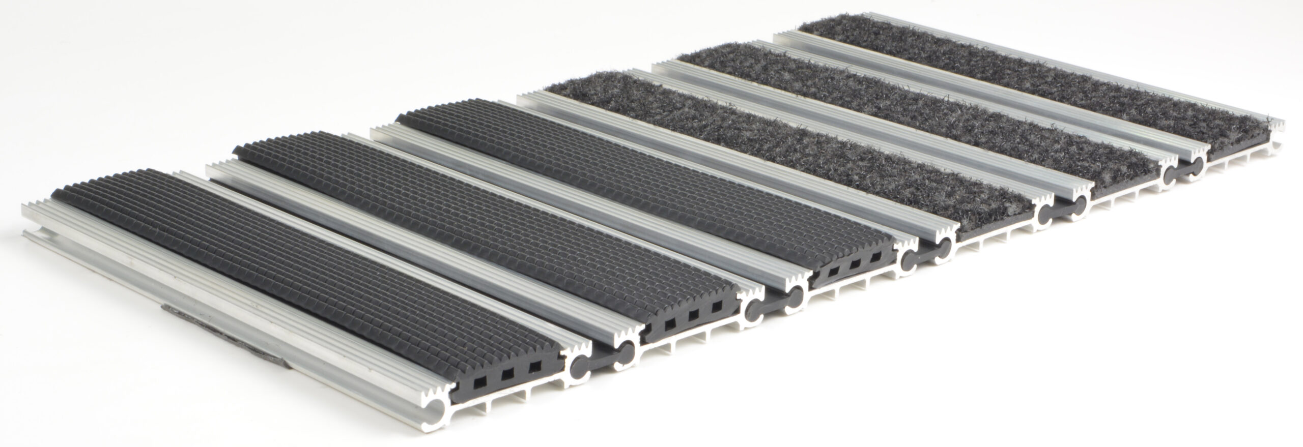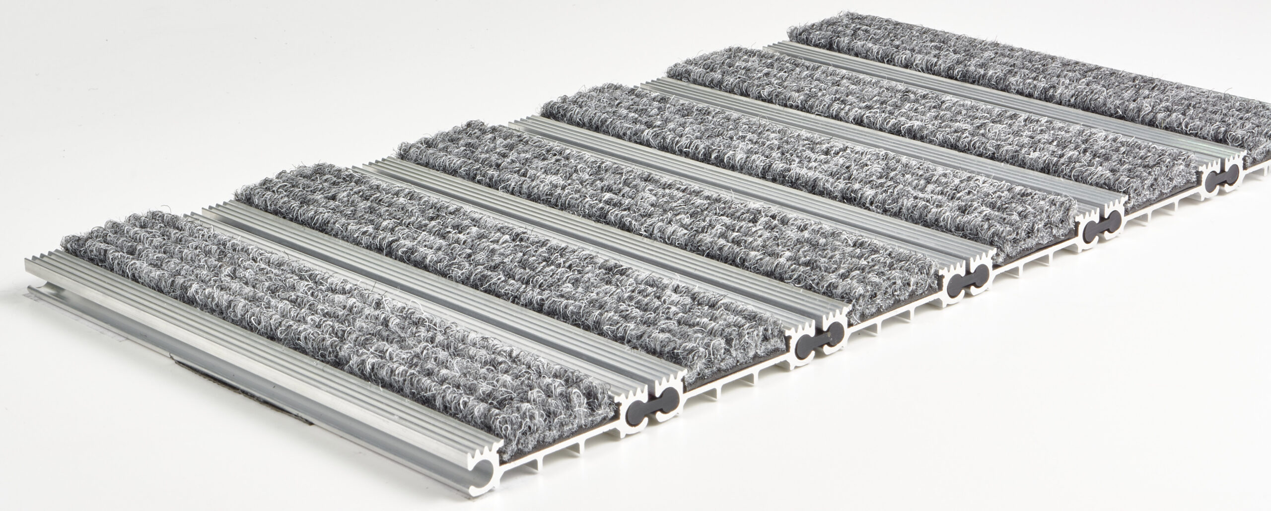 Ez egy önhordó szőnyeg, amelynek alapját széles, hornyolt alumíniumprofilok alkotják, amelyeket rugalmas, rugalmas profil köt össze, ami lehetővé teszi a szőnyeg feltekerését. Az alumíniumprofilok vagy egy hornyolt, kalapács alakú PVC-csíkkal vannak összeszerelve a durva szennyeződések esetében, vagy egy szövettel a finom szennyeződések és a víz esetében.